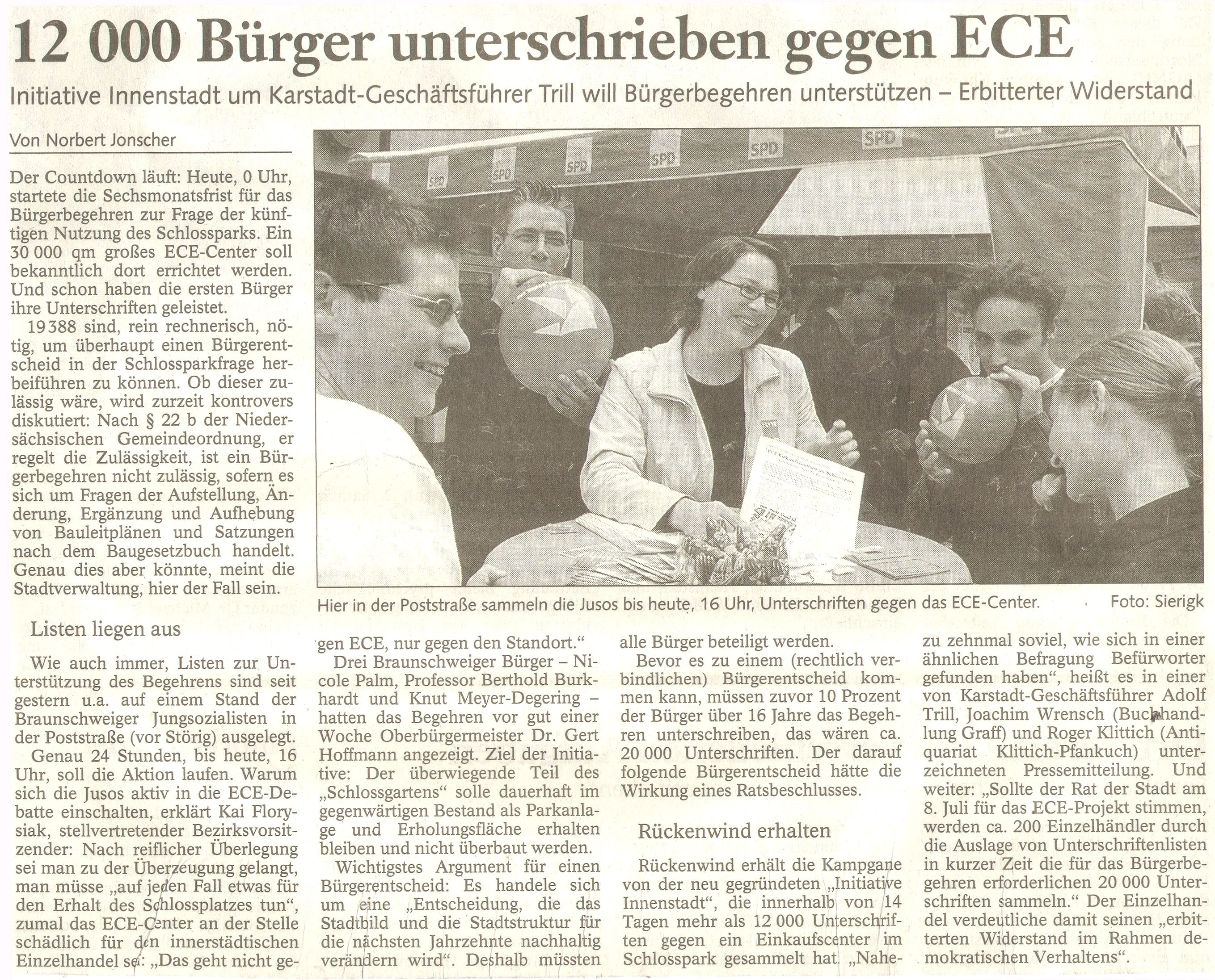 12000 Bürger unterschrieben gegen ECE Redaktioneller Beitrag vom 05. Juli 2003 Originaldatei herunterladen …