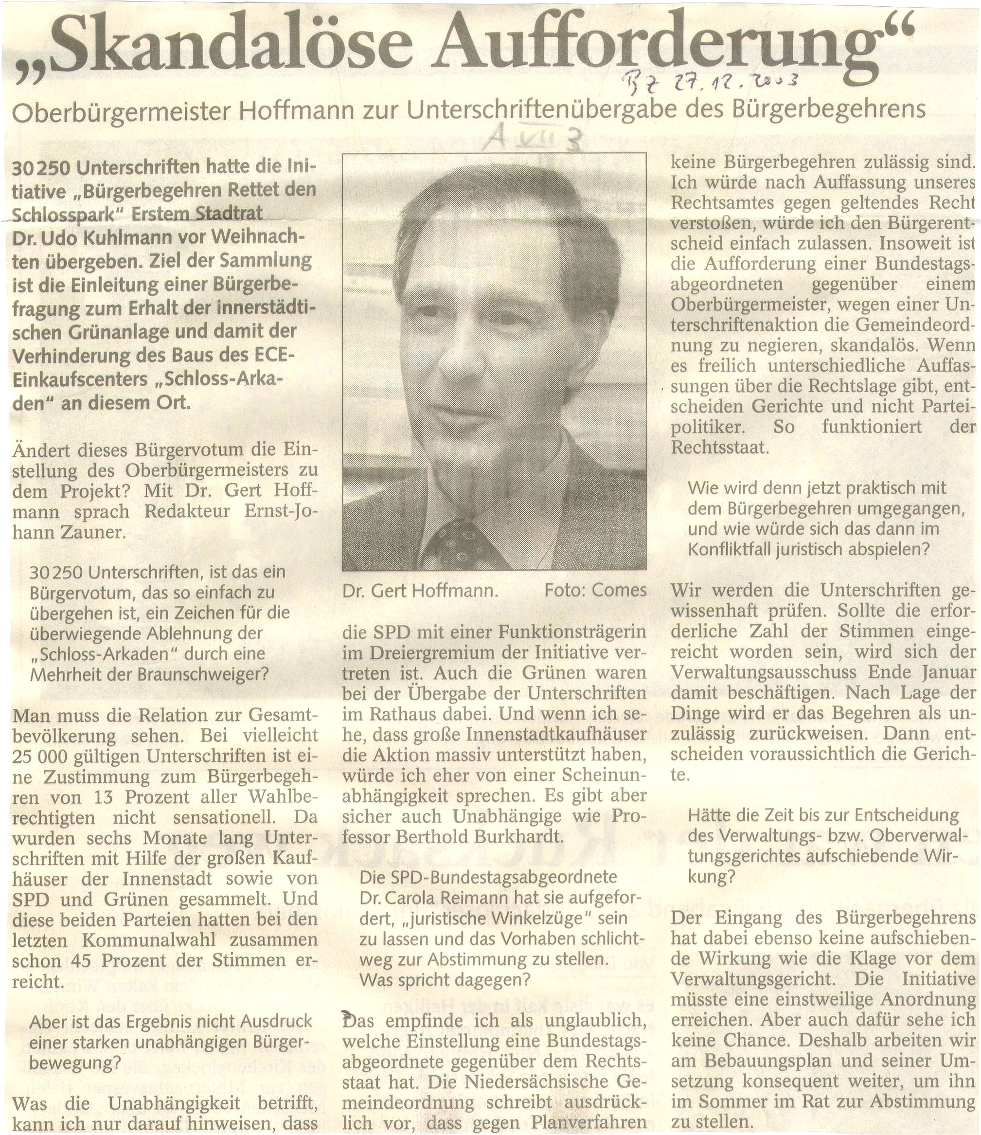 Redaktioneller Beitrag vom 27. Dez. 2003