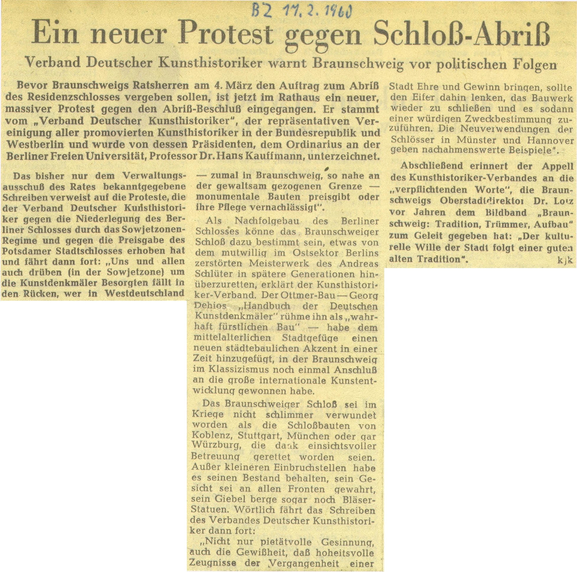 Ein neuer Protest gegen Schloss-Abriss Redaktioneller Beitrag vom 17. Feb. 1960 Originaldatei herunterladen …