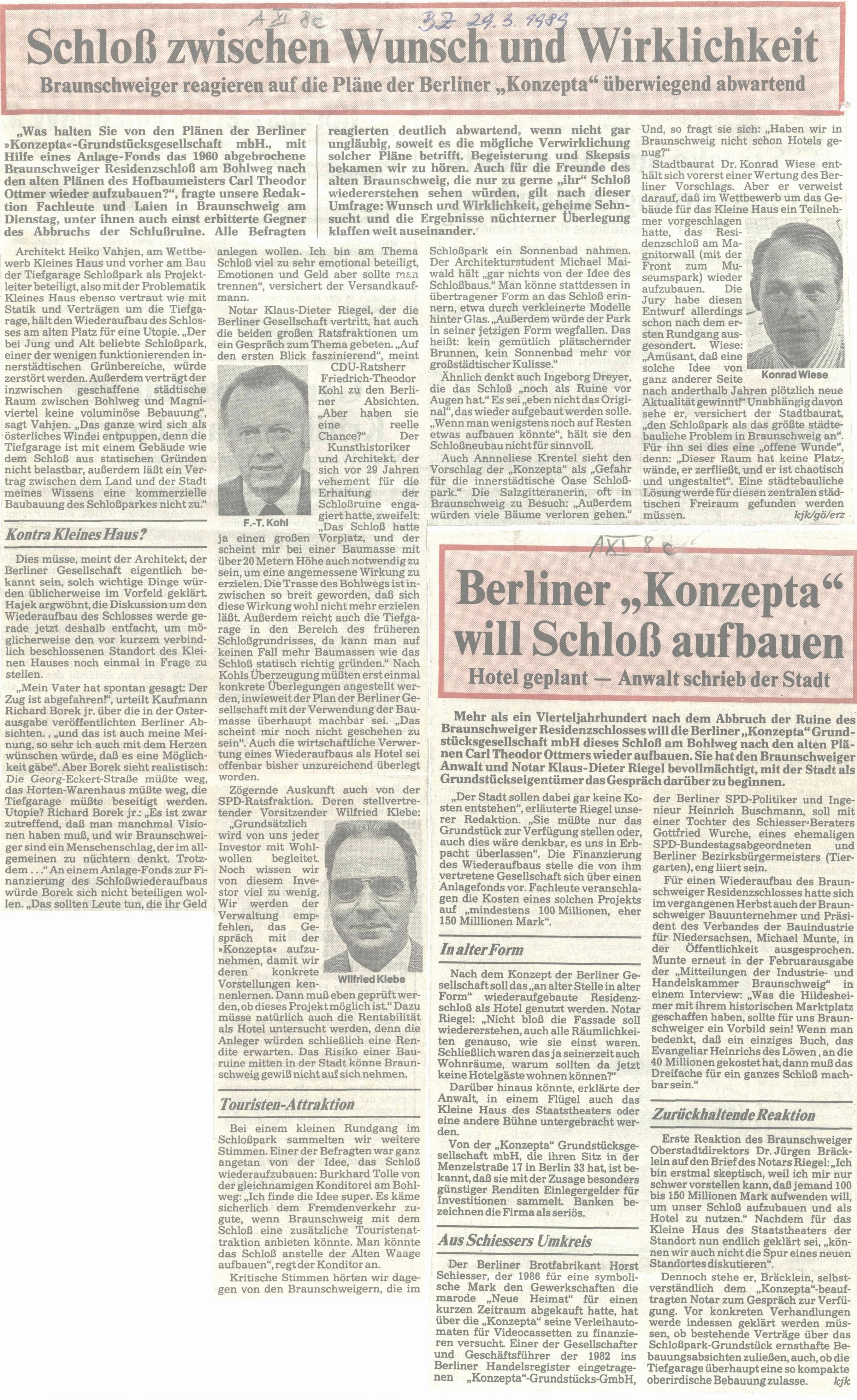 Schloss zwischen Wunsch und Wirklichkeit und Berliner „Konzepta“ will Schloss aufbauen Redaktioneller Beitrag vom 29. März 1989 Originaldatei herunterladen …