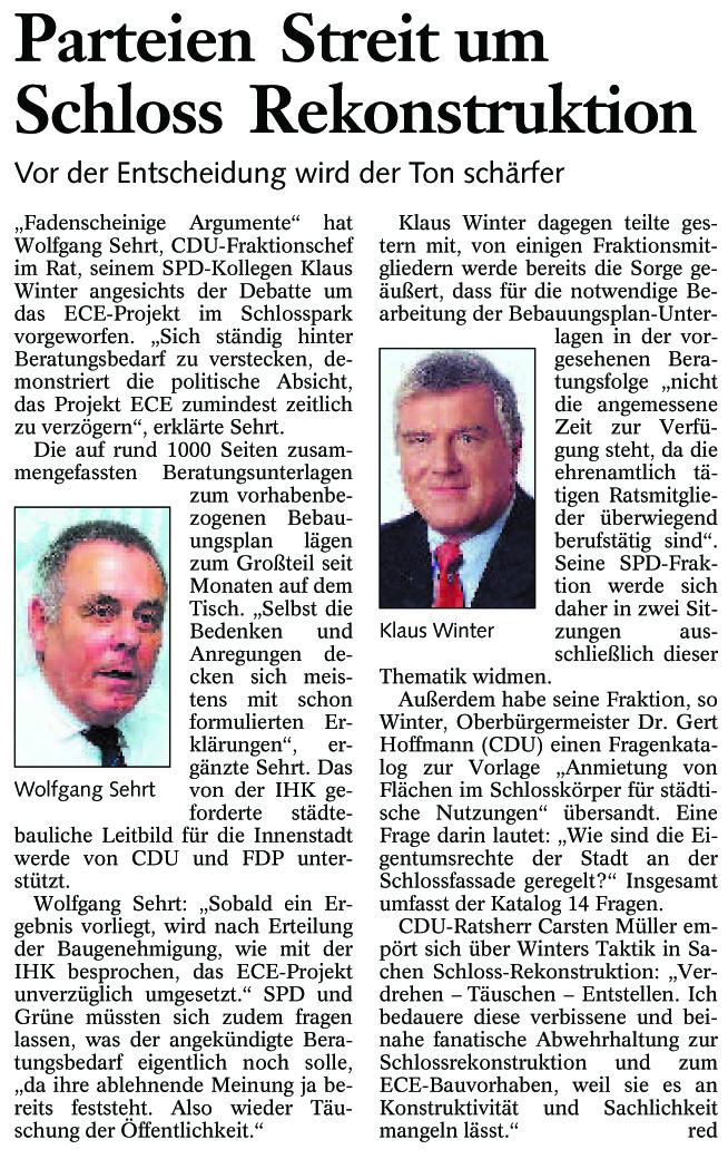 Parteien-Streit um Schloss-Rekonstruktion Redaktioneller Beitrag vom 26. Juni 2004 Originaldatei herunterladen …