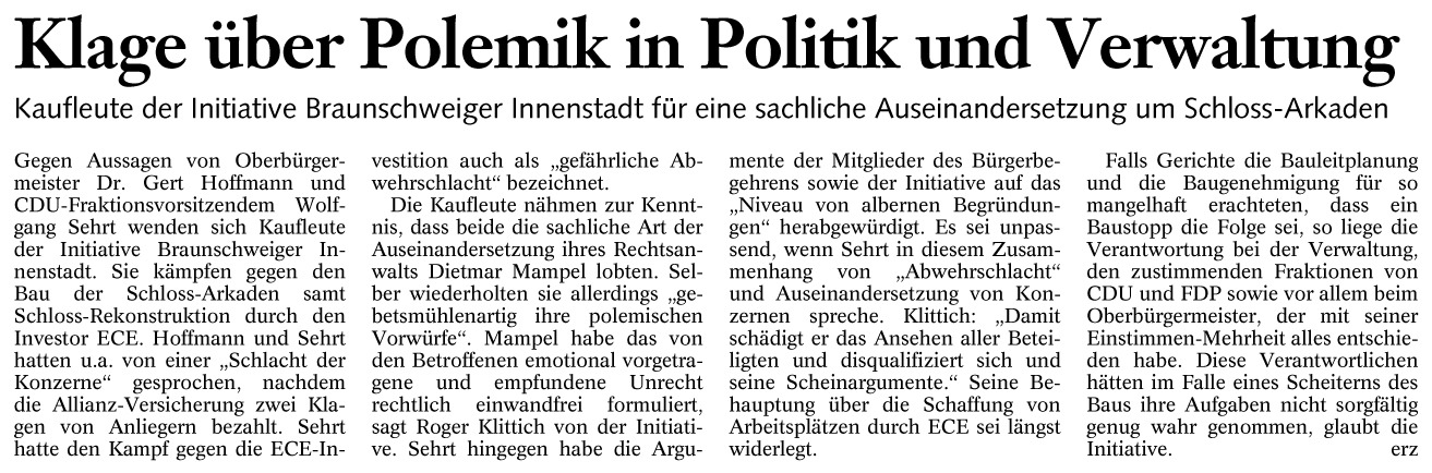 Klage über Polemik in Politik und Verwaltung Redaktioneller Beitrag vom 02. Dez. 2004 Originaldatei herunterladen …