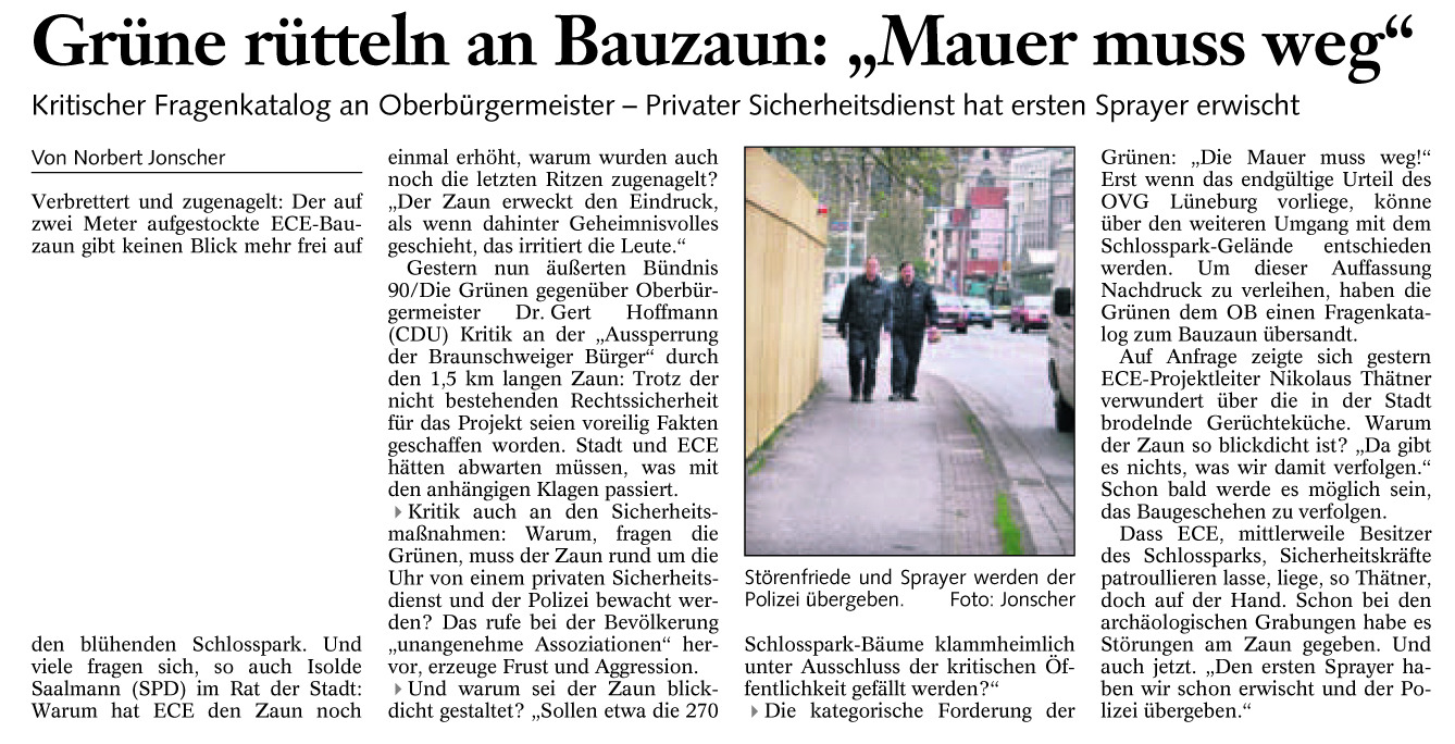 Grüne rütteln an Bauzaun: Mauer muss weg Redaktioneller Beitrag vom 30. Apr. 2005 Originaldatei herunterladen …