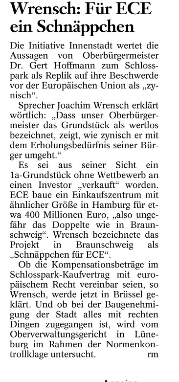 Wrensch: Für ECE ein Schnäppchen Redaktioneller Beitrag vom 02. Mai 2005 Originaldatei herunterladen …
