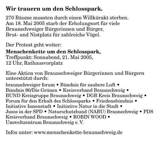 Anzeige vom 20. Mai 2005