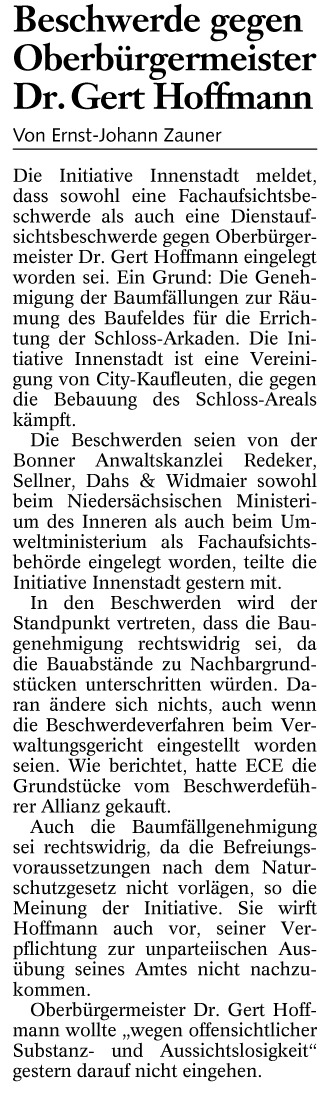 Beschwerde gegen Oberbürgermeister Dr. Gert Hoffmann Redaktioneller Beitrag vom 31. Mai 2005 Originaldatei herunterladen …