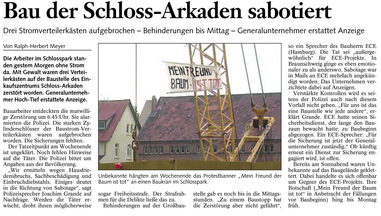 Bau der Schloss-Arkaden sabotiert Redaktioneller Beitrag vom 07. Juni 2005 Originaldatei herunterladen …