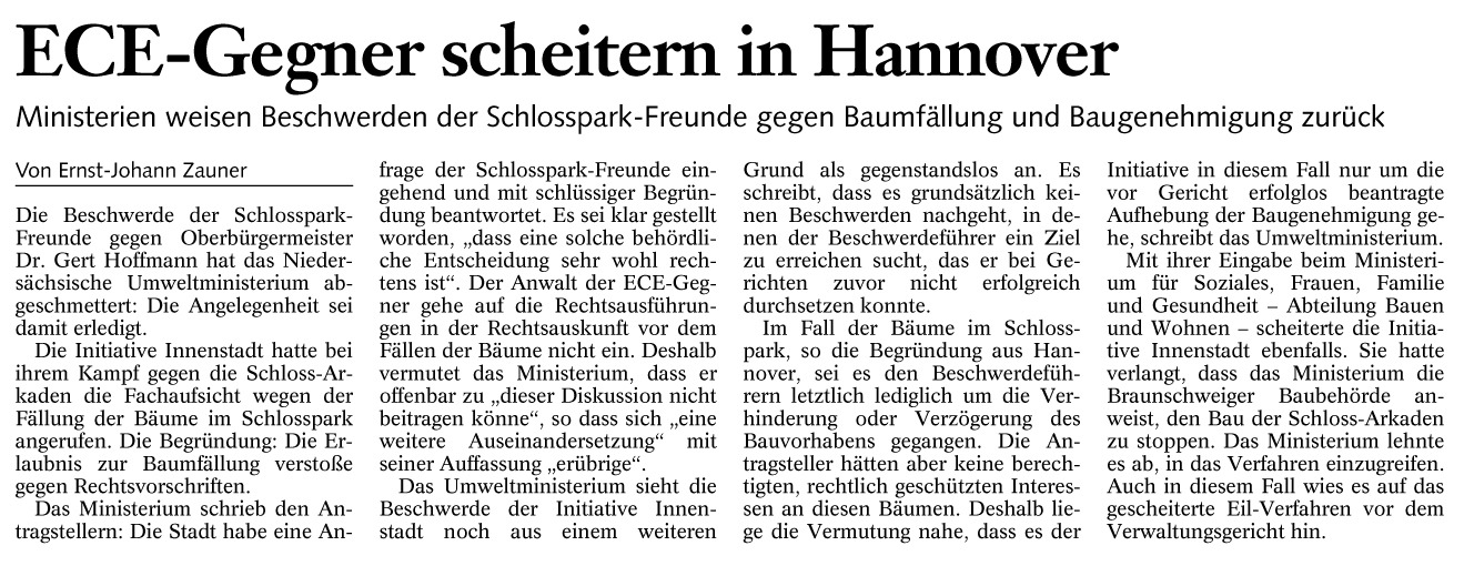 ECE-Gegner scheitern in Hannover Redaktioneller Beitrag vom 15. Juni 2005 Originaldatei herunterladen …
