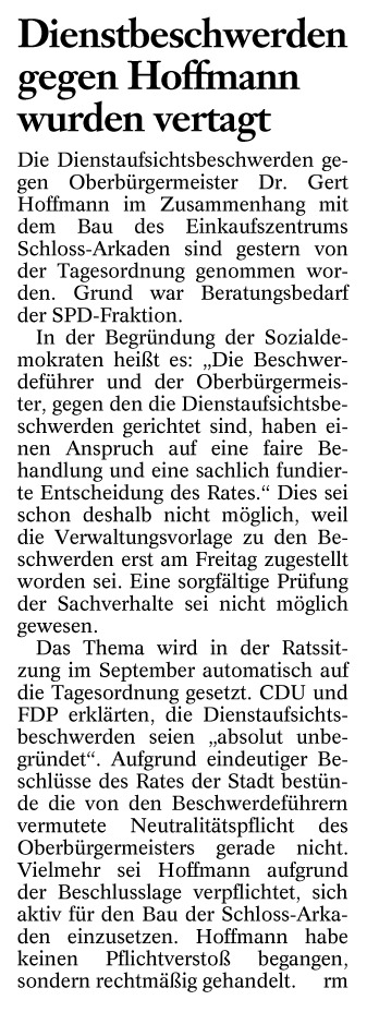 Dienstbeschwerden gegen Hoffmann wurden vertagt Redaktioneller Beitrag vom 06. Juli 2005 Originaldatei herunterladen …