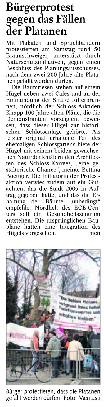 Bürgerprotest gegen das Fällen der Platanen Redaktioneller Beitrag vom 10. Apr. 2006 Originaldatei herunterladen …