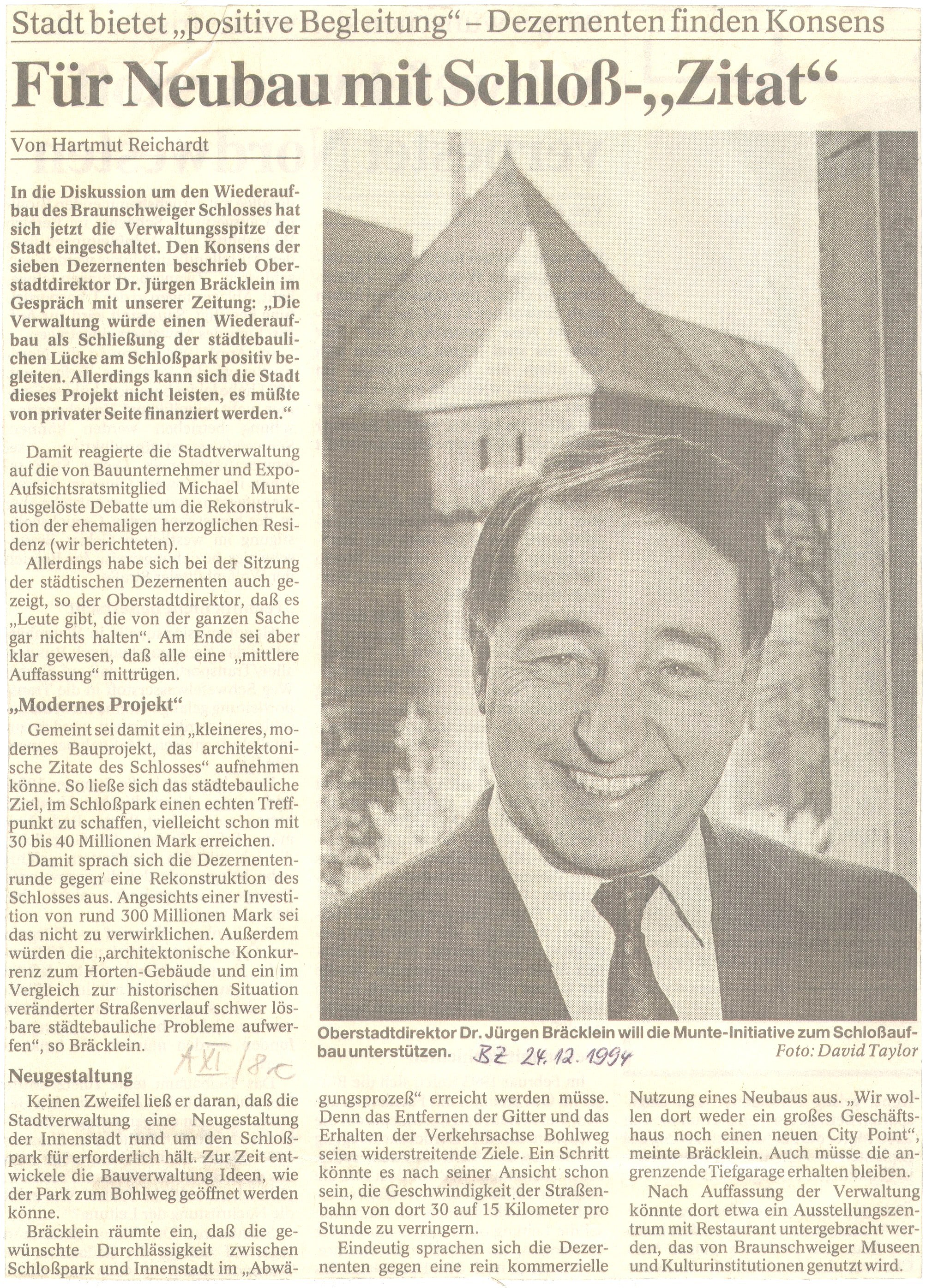 Für Neubau mit Schloss-„Zitat“ Redaktioneller Beitrag vom 24. Dez. 1994 Originaldatei herunterladen …