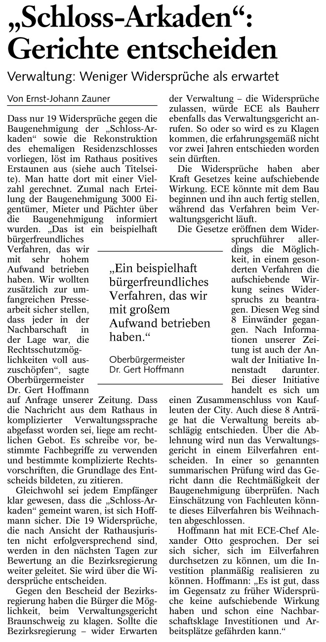 „Schloss-Arkaden“: Gerichte entscheiden Redaktioneller Beitrag vom 16. Okt. 2004 Originaldatei herunterladen …