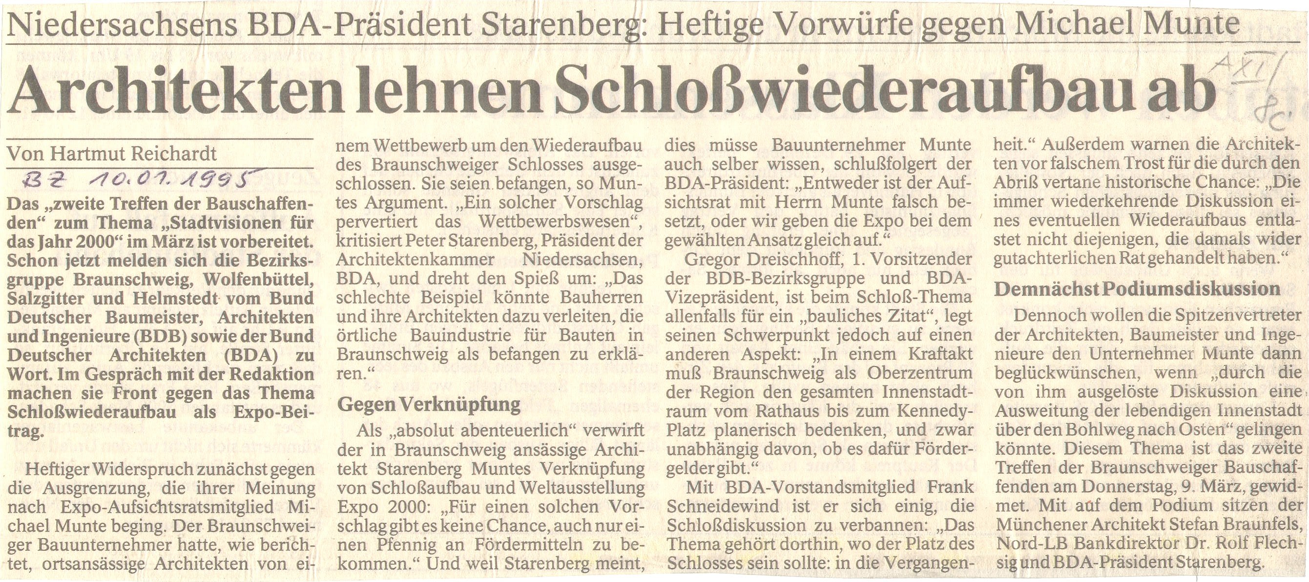 Architekten lehnen Schlosswiederaufbau ab Redaktioneller Beitrag vom 10. Jan. 1995 Originaldatei herunterladen …