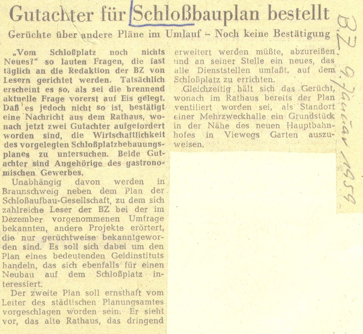 Gutachter für Schlossbauplan bestellt Redaktioneller Beitrag vom 09. Jan. 1959 Originaldatei herunterladen …